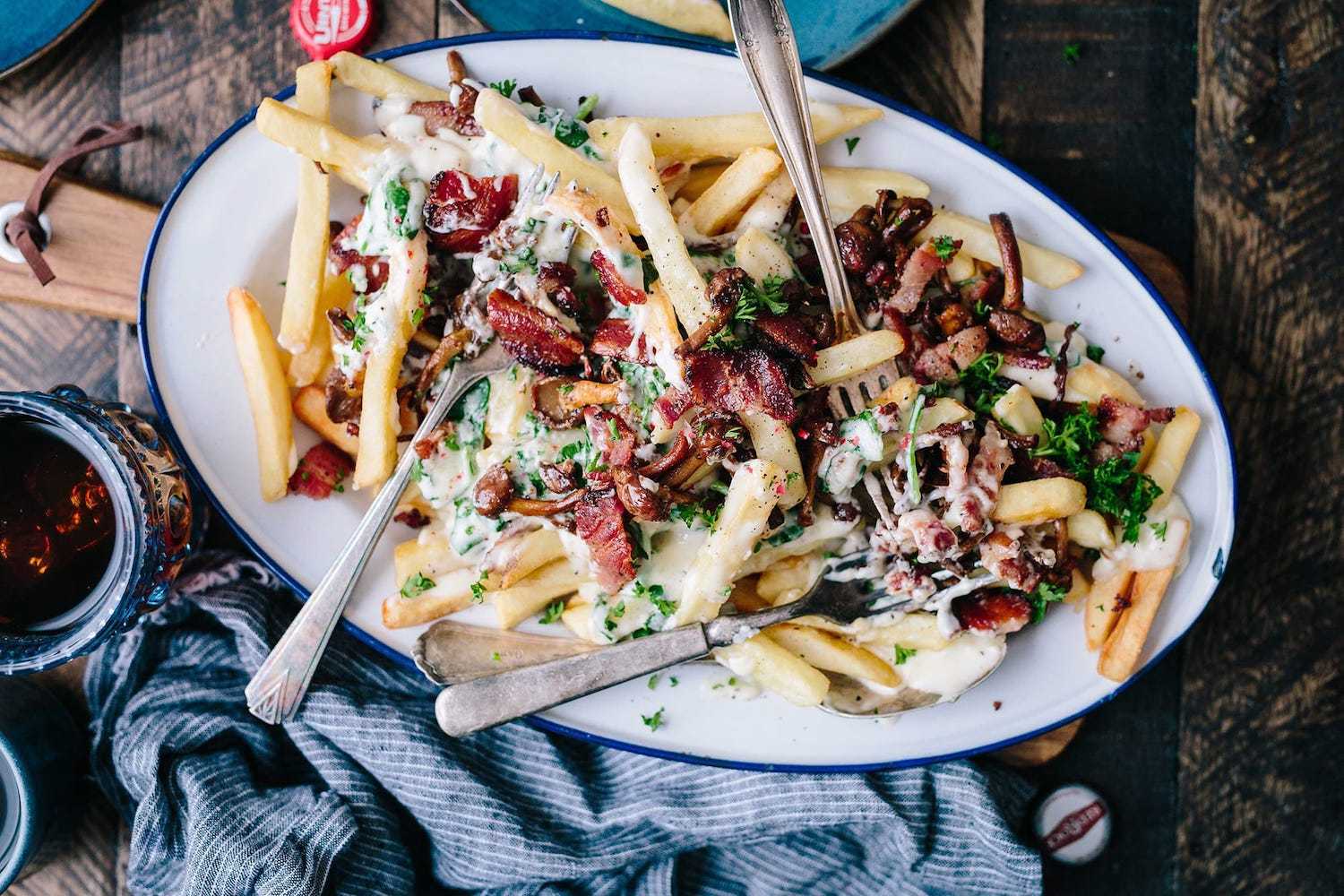 I know, what could be better that a steaming plate of fries, gravy and cheese curd? Fries, gravy, cheese curd and bacon, that’s what! Throw in some fresh shallots, chilli, and a splash of roasted bone marrow and duck gravy, and we turn this popular French-Canadian dish into a something sublime.